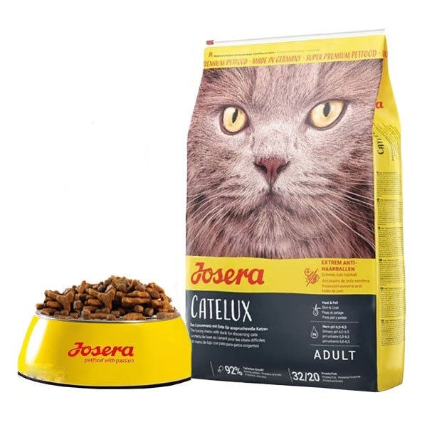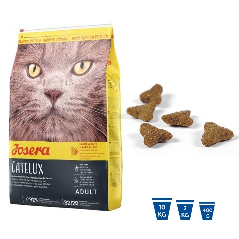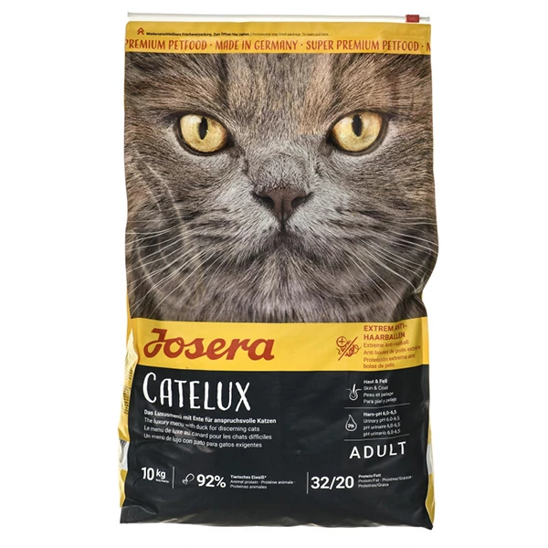 غذای گربه کتلوکس جوسرا دارای گوشت اردک به عنوان منبع پروتئین و سیب زمینی به عنوان منبع فیبر محسوب میشود. غذای گربه کتلوکس جوسرا مقادیر فراوان فیبر جهت افزایش حرکات دستگاه گوارش به منظور ممانعت از تشکیل گلوله مویی بخصوص در گربه های مو بلند را داراست. غذای گربه جوسرا دارای اسیدهای چرب امگا 3 و امگا 6 و مواد معدنی جهت سلامت و درخشندگی موها و دارای PH اسیدی جهت جلوگیری از تشکیل سنگ های ادراری میباشد.